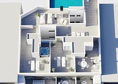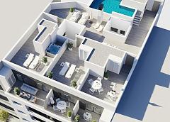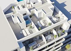 Apartamentos de nueva construcción en Torrevieja A solo 400 m de la Playa del Cura Ubicación privilegiada en el corazón de Torrevieja Descubra estos apartamentos y áticos a estrenar en una de las zonas más cotizadas de Torrevieja, a solo 400 m de la Playa del Cura y a 150 m del paseo marítimo. Situado en el centro de la ciudad, este animado barrio ofrece todos los servicios esenciales a poca distancia, incluyendo supermercados, tiendas, restaurantes, cafeterías y transporte público. Torrevieja es una conocida ciudad costera de la Costa Blanca, famosa por su clima mediterráneo templado, su animado ambiente y su estilo de vida junto al mar durante todo el año. Apartamentos modernos con distribuciones espaciosas Esta exclusiva promoción nueva consta de solo 12 apartamentos y áticos de 2 o 3 dormitorios, diseñados para ofrecer comodidad, funcionalidad y estilo contemporáneo. Los apartamentos de las plantas intermedias cuentan con amplias terrazas, mientras que los áticos disfrutan de un solárium privado adicional, ideal para tomar el sol o comer al aire libre. Todas las viviendas incluyen una cocina abierta conectada con el salón-comedor, lo que crea interiores luminosos y acogedores. Los dormitorios cuentan con armarios empotrados y los baños están totalmente equipados con muebles, espejos y mamparas de ducha. Hay plazas de aparcamiento subterráneo y trasteros opcionales disponibles con un coste adicional. Acabados de calidad y características de eficiencia energética Los apartamentos están construidos con materiales de alta calidad y un fuerte enfoque en la eficiencia energética. La carpintería exterior de aluminio incluye tecnología de rotura de puente térmico y doble acristalamiento para el aislamiento térmico y acústico. Las persianas motorizadas añaden comodidad y seguridad. Cada vivienda cuenta con preinstalación de aire acondicionado y calefacción por conductos, puertas de entrada reforzadas y puertas interiores lacadas en blanco. El agua caliente se produce mediante un sistema aerotérmico, lo que reduce el consumo de energía y mejora la sostenibilidad. Solárium en la azotea con piscina comunitaria Los residentes pueden disfrutar de un solárium exclusivo en la azotea con piscina comunitaria, accesible por ascensor o escaleras. Esta zona privada es perfecta para relajarse, tomar el sol y disfrutar de las vistas panorámicas de la ciudad. Ofrece un refugio tranquilo sobre las animadas calles de Torrevieja y añade un valor significativo a la promoción. Estilo de vida y alrededores de Torrevieja Torrevieja es conocida por su extenso litoral, sus playas de arena y sus emblemáticas salinas. El Parque Natural de las Lagunas de La Mata y Torrevieja se encuentra a unos 5 km y ofrece rutas de senderismo y paisajes únicos. Varios campos de golf, como Villamartin Golf y Las Colinas Golf, se encuentran a entre 12 y 18 km. El puerto deportivo y el puerto de Torrevieja están a aproximadamente 1 km. El aeropuerto de Alicante está a unos 45 km y el aeropuerto internacional de Murcia a unos 65 km, ambos con excelentes conexiones europeas. Su hogar en la costa le espera No pierda esta oportunidad de adquirir un moderno apartamento de nueva construcción cerca de la playa en Torrevieja. Póngase en contacto con nosotros hoy mismo para obtener más información o concertar una visita privada. 271